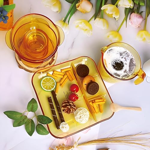 - يتوفر هذا المنتج باللون الكهرماني المذهل، فهو لا يخدم غرضًا وظيفيًا فحسب، بل يضيف أيضًا لمسة من الأناقة إلى مجموعة أدوات المطبخ الخاصة بك. لونه الجذاب يجعله إضافة جميلة لأي مكان لتناول الطعام.