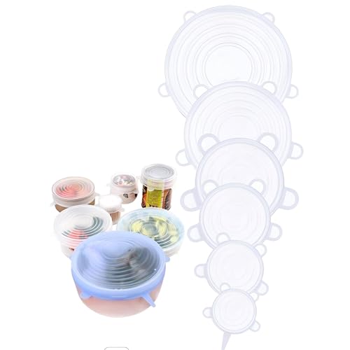 Generic - اغطية طعام قابلة لاعادة الاستخدام - 6 اغلفة سيليكون مع اغطية اكواب قابلة للتوسيع وقابلة للتمدد باحجام مختلفة (ابيض)