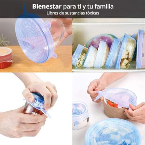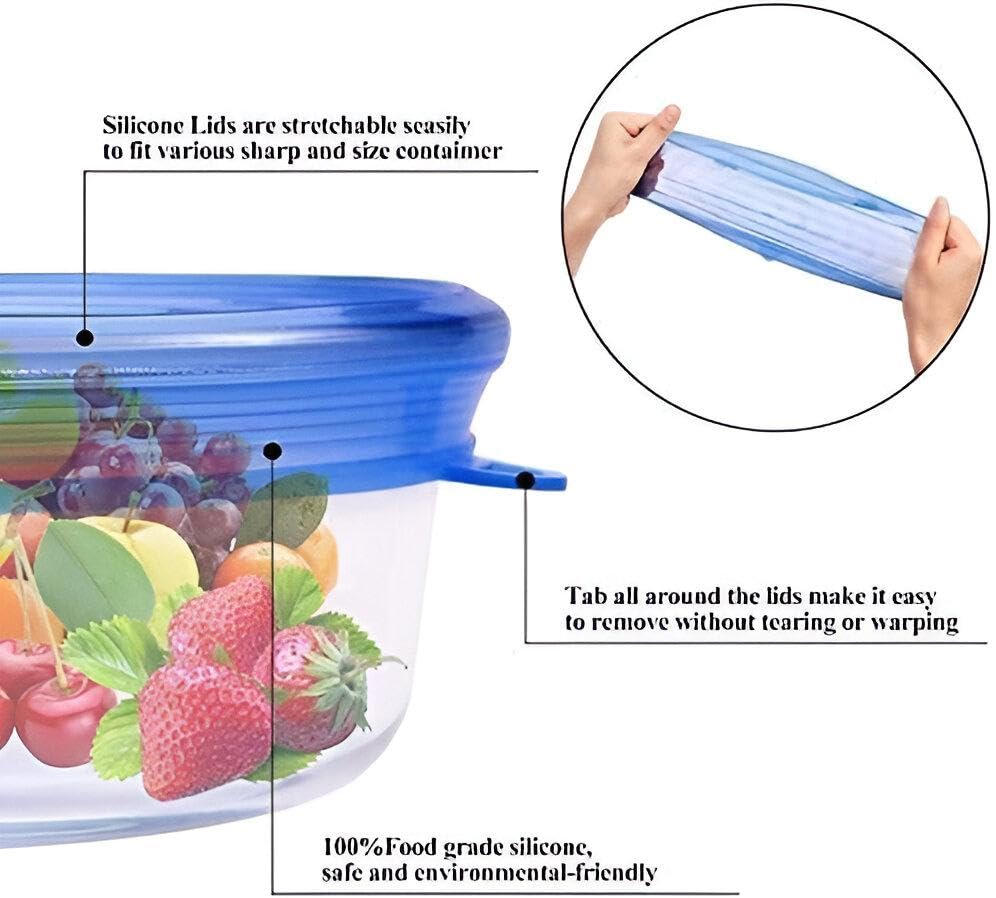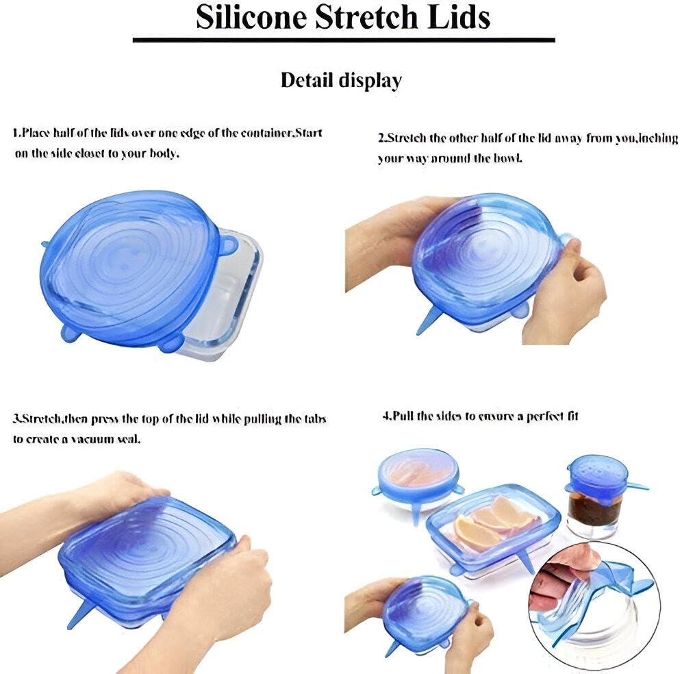 - تأتي أغطية السيليكون القابلة للتمدد في مجموعة من 6 قطع بمقاسات مختلفة مصممة لتناسب العديد من الحاويات والأكواب والبرطمانات والأوعية. تضمن مرونتها إغلاقًا محكمًا ومانع للتسرب يساعد على الحفاظ على الطعام طازجًا ويمنع الانسكابات بفعالية.