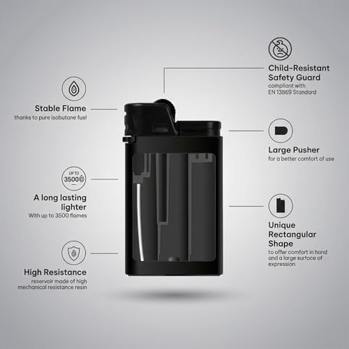 Generic - ولاعات غاز قابلة لإعادة الاستخدام، لهب ايزوبوتان نقي حتى 3500 عملية إشعال، تصميم متين عالي المقاومة وحماية آمنة للأطفال، عبوة من 6 قطع