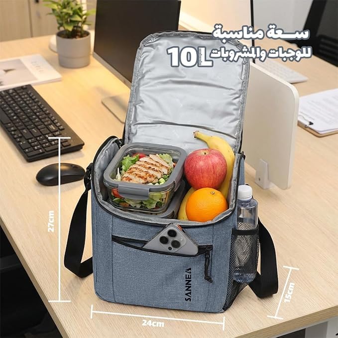 Generic - شنطة تبريد طعام معزولة قابلة لاعادة الاستخدام سعة 10 لتر، شنطة حمل طعام حرارية مقاومة للماء ومانعة للتسرب مع مقابض لوجبات العمل والمدرسة والسفر والنزهات، BB-519 (رمادي)