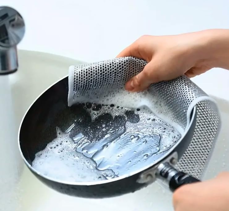 - قابلة لإعادة الاستخدام ومتينة: مصنوعة من مادة شبكية فضية عالية الجودة يمكن غسلها وإعادة استخدامها عدة مرات، مما يوفر أداء تنظيف طويل الأمد لاحتياجات مطبخك