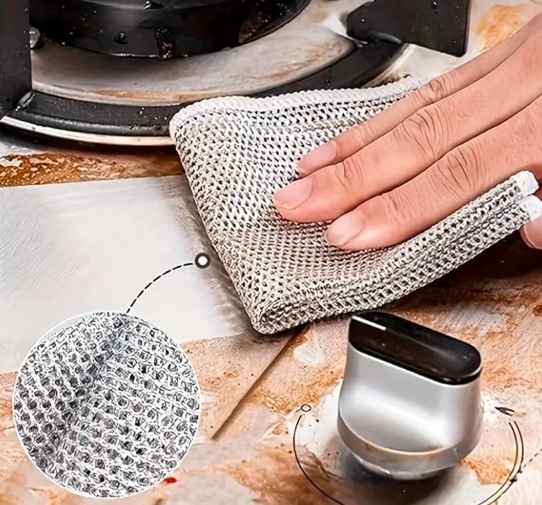 Generic - اسفنجة تنظيف غير قابلة للخدش وقابلة لاعادة الاستخدام، لازالة البقع، قماش غسيل الاطباق، شبكة فضية