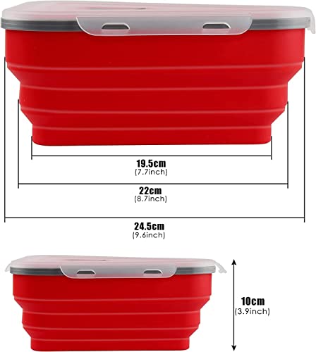 outlev - علبة تخزين بيتزا قابلة لإعادة الاستخدام مع 5 صواني تقديم مناسبة للميكروويف حافظة شرائح للطي لتنظيم وتوفير المساحة صناديق للخضروات والفواكه واللحوم للمطبخ والمكتب والمدرسة أحمر