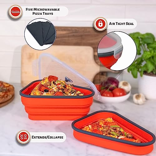 BEINCART - علبة تخزين بيتزا قابلة لإعادة الاستخدام مع 5 صواني تقديم للاستخدام في الميكروويف | مثالية | أدوات | شرائح للتعديل لتوفير مساحة الرف وتنظيمها | بين كارت
