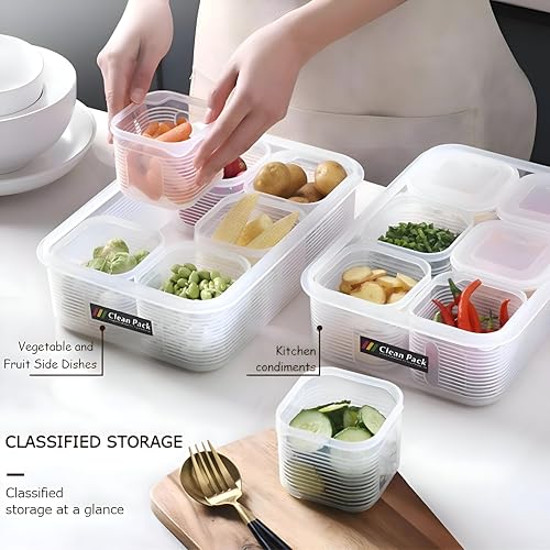 Generic - حاويات بلاستيكية القابلة لإعادة الاستخدام مع مقصورات قابلة للإزالة مصممة للتخزين والحفظ الأمثل للفواكه والخضروات واللحوم والمأكولات البحرية، والحفاظ على نضارتها.6 قطع