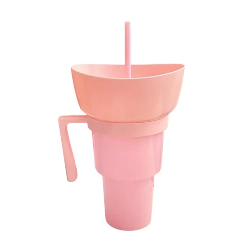 Generic - كوب بلاستيكي متعدد الاستخدامات 2 في 1 للوجبات الخفيفة – أكواب فشار وكوب مشروبات محمول مقاوم للرذاذ ومانع للتسرب قابل لإعادة الاستخدام، للسفر ودور السينما (وردي)