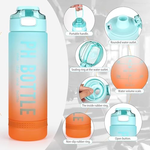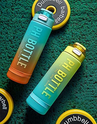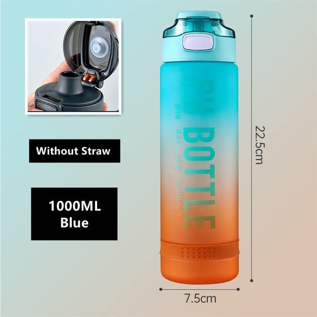 Generic - زجاجة مياه رياضية امنة قابلة لاعادة الاستخدام - مانعة للتسرب لجميع الانشطة تحفيزية مع علامات للوقت محمولة للدراجة والتخييم 1 لتر أزرق بلاستيك