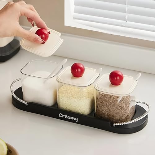 Generic - مجموعة توابل قابلة لاعادة الاستخدام - 3 علب بلاستيكية شفافة مع اغطية وحظائر، بما في ذلك صينية لترتيب المطبخ بسرعة وسهولة للوصول الى التوابل الاساسية