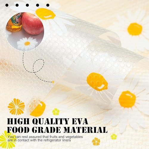 Generic - سجادة ثلاجة سيليكون قابلة لاعادة الاستخدام من 4 قطع، بطانة رف مزخرفة بتصميم عباد الشمس، مضاد للانزلاق ومقاوم للماء للخزانة والادراج لتنظيم المطبخ والمنزل (عبوة واحدة (4 قطع))