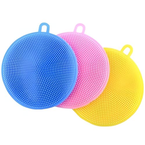Generic - اسفنجة سيليكون قابلة لاعادة الاستخدام - اسفنجة اطباق صديقة للبيئة وغير قابلة للخدش تجف بسرعة وتنظف الفواكه والخضروات وادوات الطبخ؛ عبوة من 3 قطع متعددة الالوان
