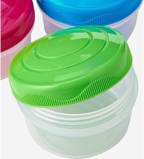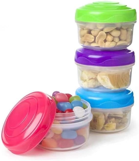 - مجموعة من 4 حاويات تخزين: تتضمن أربعة أوعية صغيرة مثالية للوجبات الخفيفة والصلصات والفواكه وأجزاء الطعام الصغيرة