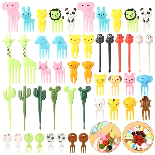 Generic - شوك الوجبات الخفيفة القابلة لإعادة الاستخدام - أعواد أسنان ممتعة ورائعة ذات طابع حيواني للأطفال، مثالية للفاكهة والغداء، مما يجعل وقت الوجبة ممتعًا ومستدامًا للأطفال الصغار متعدد الاشكال (60)