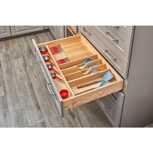 Rev-A-Shelf - ريف-ايه-شيلف مقسم ادراج المطبخ الخشبي وحامل السكاكين من تريم تو فيت، 33.13 × 22 انش، خشب القيقب، 4WUTKB-36SH-1