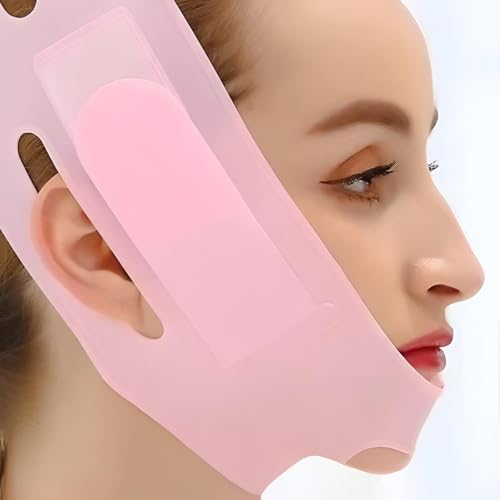 - This V-shaped silicone facial tightening belt is designed to reduce double chin and sculpt the jawline, providing a more defined facial contour for both women and men, with balanced pressure that adapts to various face shapes.