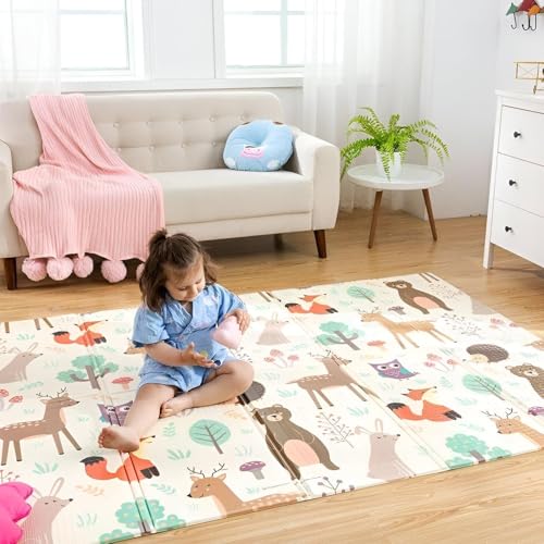 Generic - بساط لعب قابل للعكس - وسادة لعب اسفنجية مقاومة للماء بنمط حيوانات الغابات، 150 × 180 سم، قابلة للطي وسهلة التنظيف، مثالية للعب التنموي للرضع والاطفال الصغار.