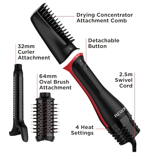 REVLON - مجفف ومكثف للشعر بخطوة واحدة من ريفلون ، متعدد الاستخدامات مع ٣ ملحقات، 820.0 واط، اسود