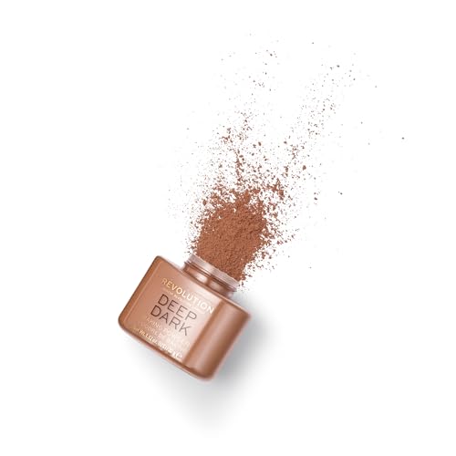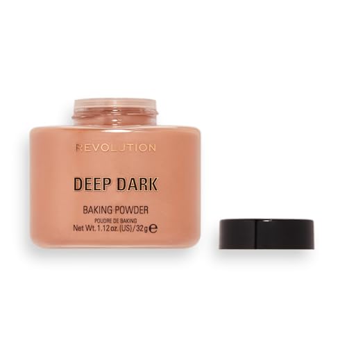 Revolution Beauty London - بودرة سائبة بيكنج باودر من ريفوليوشن بيوتي، بودرة تثبيت المكياج، تغطية تدوم طويلا، تزيل اللمعة وتقلل اللمعان، لون ديب دارك، وزن 32 جم