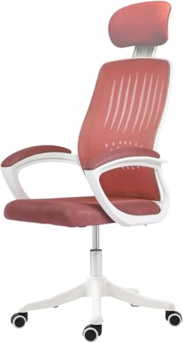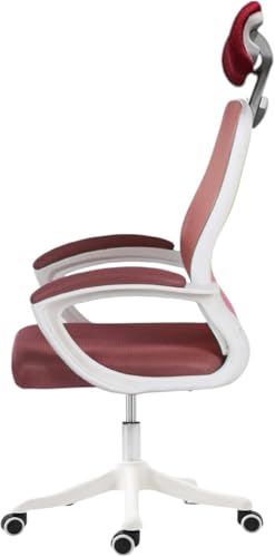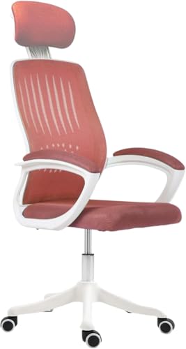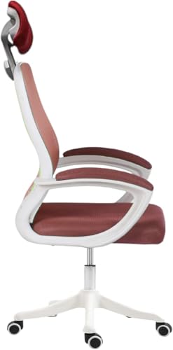Reyad Group, - كرسي مكتب شبكي عالي الظهر من رياض جروب، مسند رأس قابل للتعديل، مسند ذراع ثابت، قاعدة نايلون بيضاء، لمسة نهائية حمراء