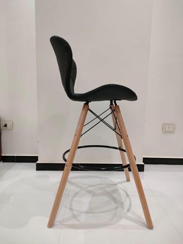 Reyad Group, - مقعد مقهى من الجلد الأسود ثابت بارتفاع 75 سم، مسند قدم كروم لأجواء المطاعم من رياض جروب، لون أسود