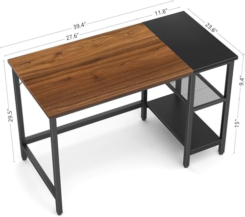 - مكتب مقاس 1.01 م باللون الأسود الجوزي مع أرفف للدراسات الصغيرة الحديثة.