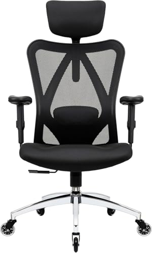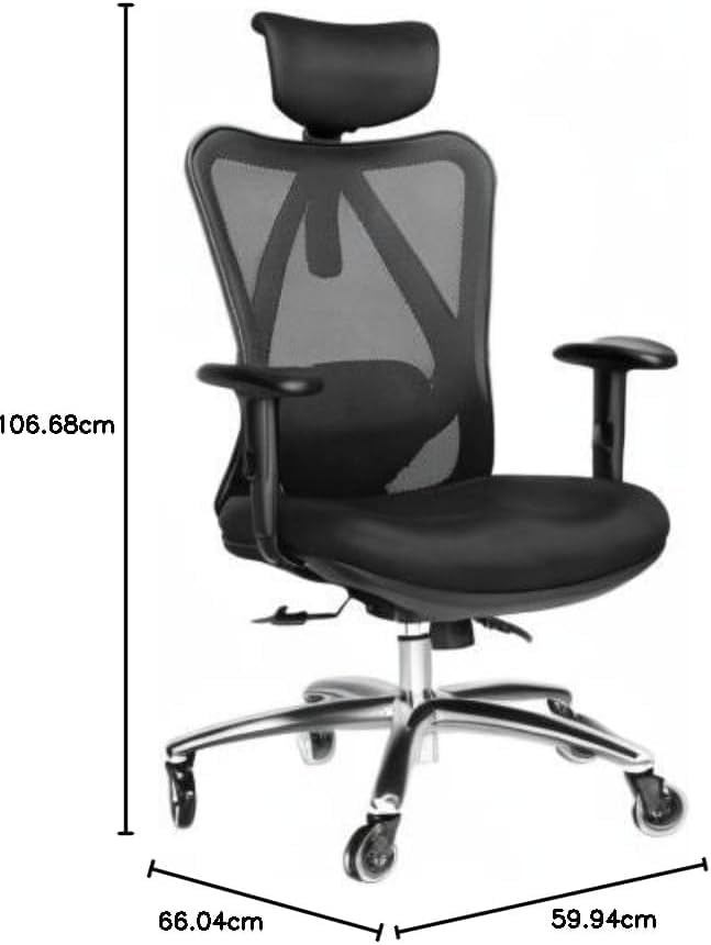 Reyad Group, - كرسي مكتب عالي الظهر داعم للخصر وقابل للتعديل بظهر شبكي وسادة سميكة مع مسند رأس وذراعين ثلاثي الأبعاد وعجلات رولربليد قابل للإمالة حتى 135° من مجموعة رياض دورامونت، أسود