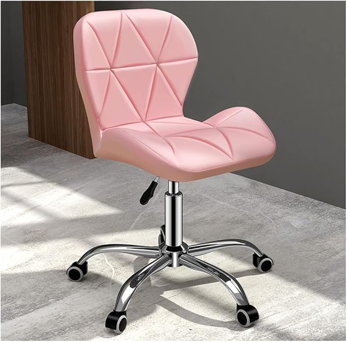 - ظهر متوسط من جلد صناعي وردي ممتع لمكاتب غرف النوم، بدون مسند ذراعين للوصول القريب.