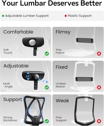 - مسند رأس قابل للتعديل ودعم أسفل الظهر يقلل من إجهاد الرقبة والظهر.