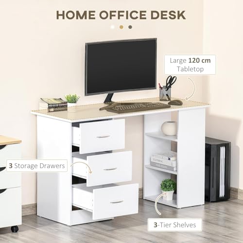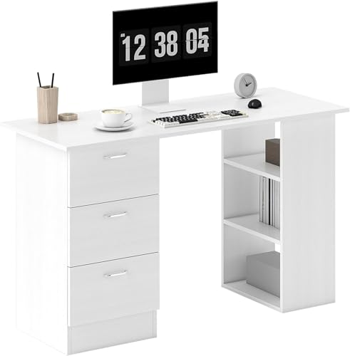 Reyad Group, - مكتب كمبيوتر هوم كوم مع 3 أرفف وأدراج تخزين من رياض جروب، مقاس 120 سم، لون أبيض