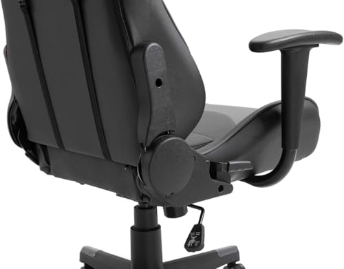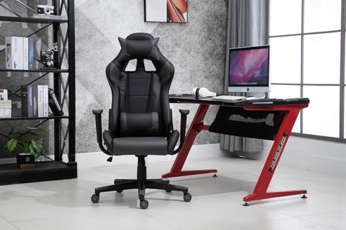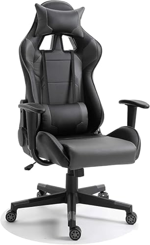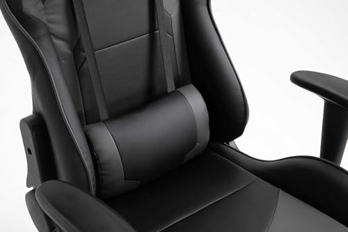 - كرسي ألعاب بظهر مرتفع من الجلد الصناعي باللونين الرمادي والأسود مزود بوسادة رقبة قابلة للتعديل للعب بشكل مريح.