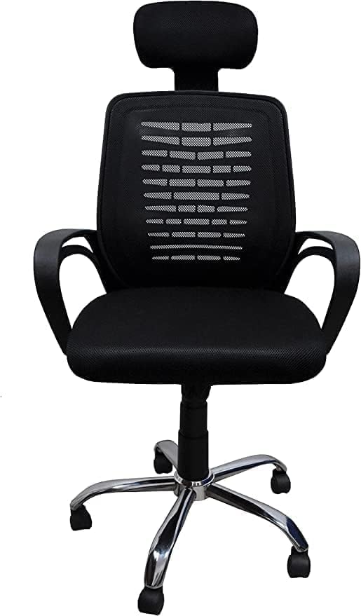 Reyad Group, - كرسي شبكي بظهر مرتفع واذرع ثابتة وظهر ومسند راس قابل للتعديل وقاعدة معدنية قوية من رياض جروب ماركت مصر - اسود