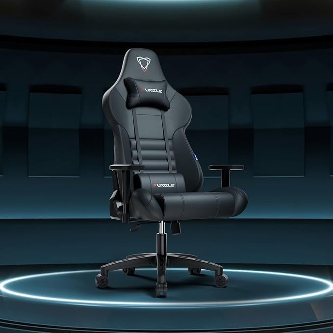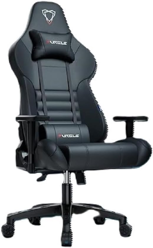 Reyad Group, - كرسي العاب بتصميم سباق مصنوع من جلد البولي يوريثين عالي الظهر ومساند ذراع رباعية الابعاد ومسند راس ووسادة اسفل الظهر، قابل للامالة 135 درجة وصخور من رياض جروب - اسود