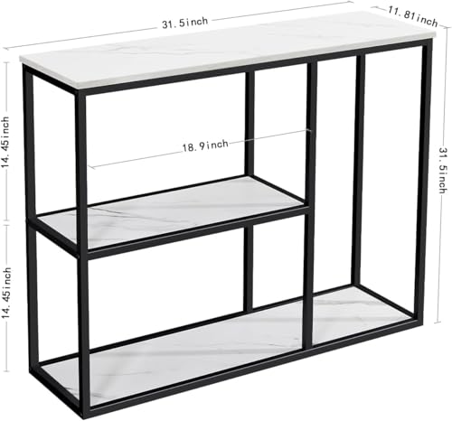 Reyad Group, - طاولة جهاز تشغيل ألعاب الفيديو الرقمية هومو مقاس 30 سم بتصميم ضيق لغرفة المعيشة من رياض جروب، طاولة كنبة صناعية عصرية مع رفوف تخزين من 3 طبقات مقاس 80 سم للممر والرواق- رخام أبيض