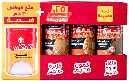 Reyhana - شيكرات ملح الطعام مع ملح كوكس المعالج باليود من ريحانة، 385 جم، عبوة من 3 قطع