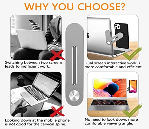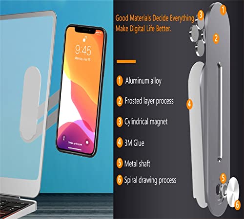 - سهل الاستخدام | يستخدم حامل الهاتف تصميمًا مغناطيسيًا يمكنه التشبث بالموبايل بإحكام بجوار الكمبيوتر المحمول أو الشاشة. من السهل جدًا تركيبه وحمله واستخدامه. يمكنك رؤية الموبايل وشاشة الكمبيوتر المحمول في نفس الوقت مع حامل الهاتف هذا