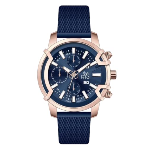 reys - ساعة ستانلس ستيل للجنسين من ريس، لون ازرق وذهبي وردي، تناظري