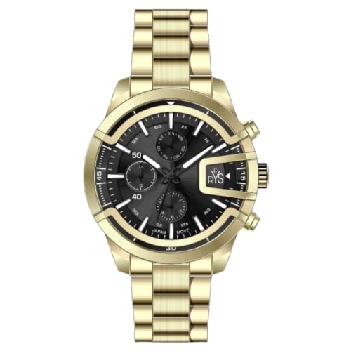 reys - ساعة من الستانلس ستيل للرجال من ريس، ذهبي واسود، موديل R2029-GB, أزرق، انالوج