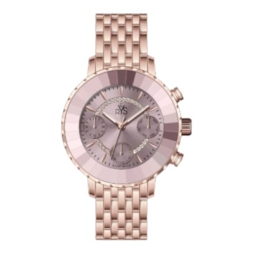 reys - ساعة للنساء من ريس - ستانلس ستيل - ذهبي وردي وبني R2041-RC، تناظري