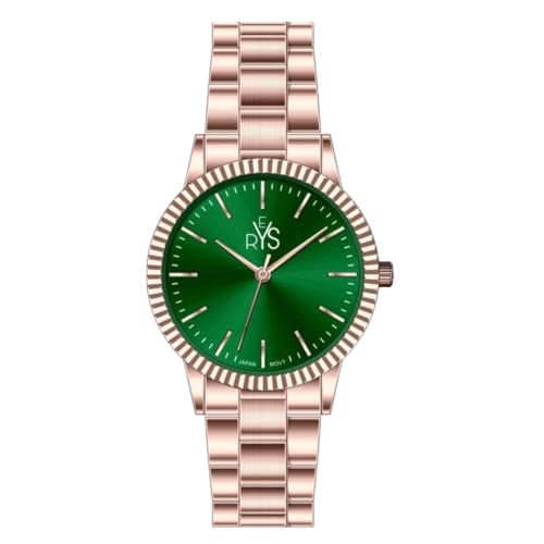 reys - ساعة للنساء من ريس - ستانلس ستيل - ذهبي وردي واخضر R2042-RGN، انالوج