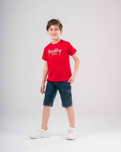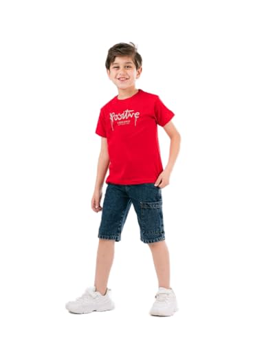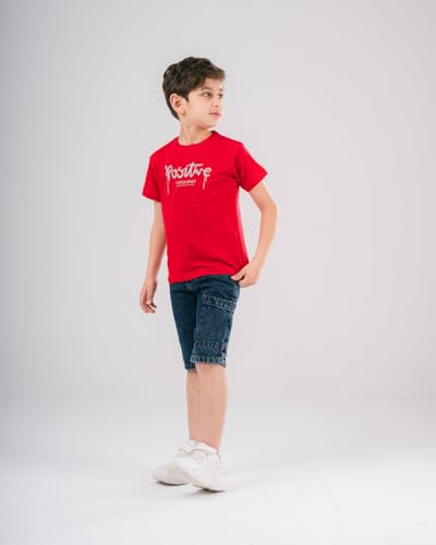 RFA - تيشرت بأكمام قصيرة مطبوع بتصميم كلمة Positive للأولاد بعمر 12 سنة من ار اف ايه، أحمر