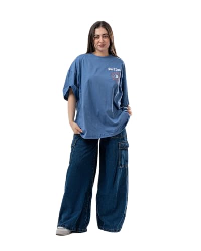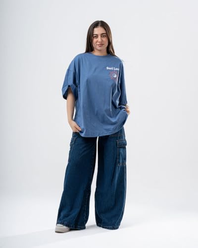 RFA - تي شيرت مطبوع بوجهين للنساء من ار اف ايه، مقاس XXL، ازرق نيلي