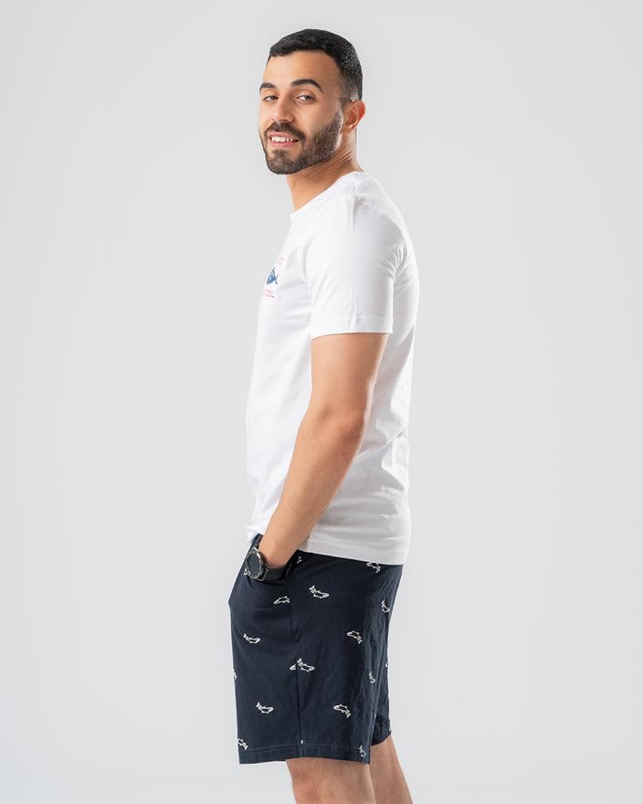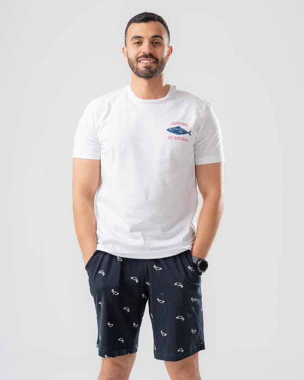 RFA - بيجامة رجالي مطبوعة مريحة وناعمة وجيدة التهوية من ار اف ايه، مقاس 3XL، ابيض وكحلي