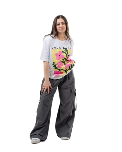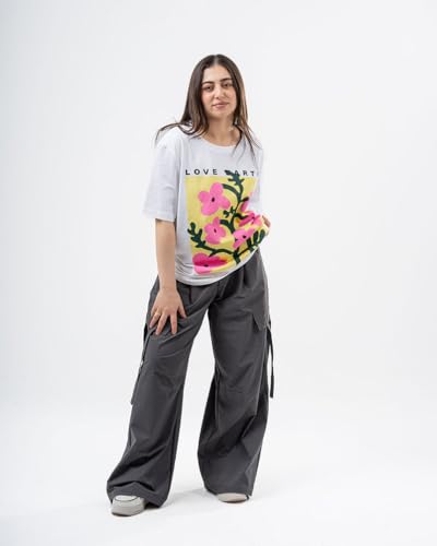 RFA - تي شيرت قطن ابيض كبير الحجم مطبوع عليه Love Art من ار اف ايه، مقاس XL، ابيض