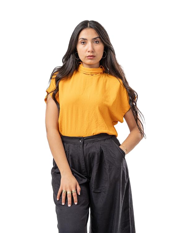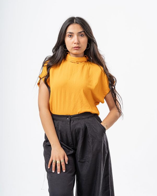 RFA - بلوزة باكمام قصيرة مع دانتيل للنساء من ار اف ايه، مقاس M، لون برتقالي