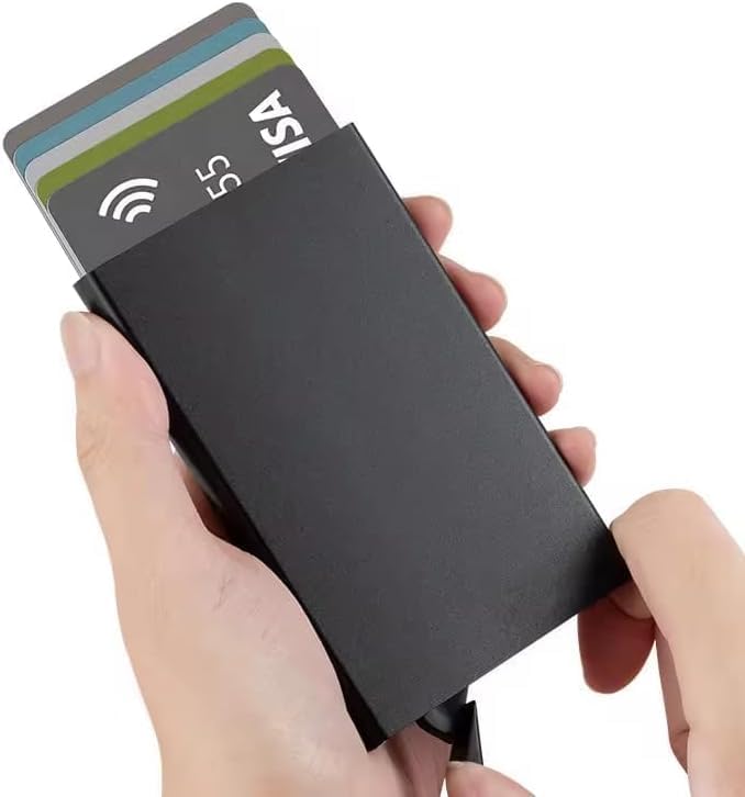 - تصميم رفيع: هيكل معدني رفيع للغاية يحافظ على مظهر أنيق مع حمل ما يصل إلى 6-8 بطاقات بأمان دون إضافة حجم إلى جيبك.
