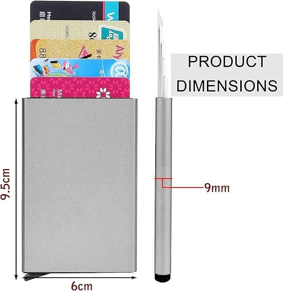 - مادة متينة وعالية الجودة: مصنوعة من الألومنيوم المتين مع تصميم أنيق يوفر حماية قوية للبطاقات من الخدش والكسر والتلف
