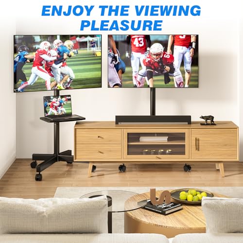 - حامل تلفزيون عالمي: حامل تلفزيون متحرك يناسب معظم شاشات التلفزيون المسطحة ال اي دي أو LCD مقاس 23 إلى 55 بوصة. الحد الأقصى لوزن حمل التلفزيون هو 40 كجم. متوافق مع نمط فتحة فيسا 10 سم × 10 سم إلى 40 سم × 40 سم.