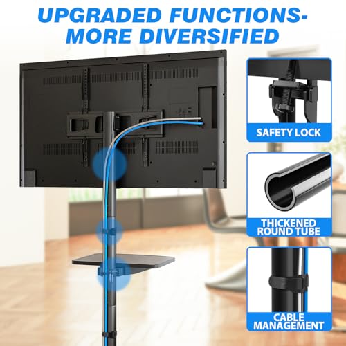 - حركة مريحة: يأتي حامل التلفزيون هذا بأربع عجلات شديدة التحمل قابلة للقفل بزاوية 360° مع مقاومة جيدة وثبات ممتاز في الراحة والحركة، ويمكن نقله بسهولة إلى مناطق مختلفة حسب وضع الأشخاص.