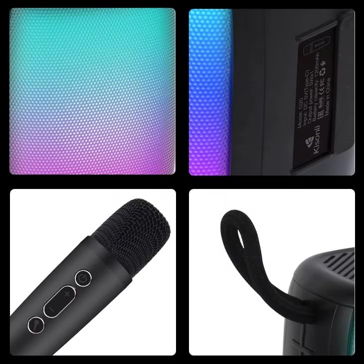 Generic - سماعة سبيكر بلوتوث G20 كاريوكي محمولة مع ميكروفون وإضاءة ار جي بي وقوة 5 وات وبطارية تدوم حتى 5 ساعات