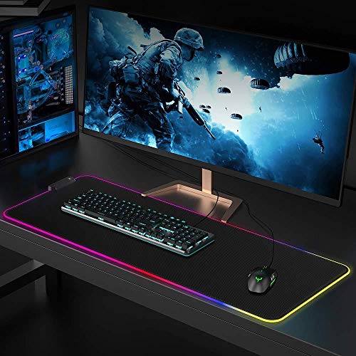 Goodstuff - قاعدة ماوس لللأعاب بإضاءة الفضاء اللوني ار جي بي، قاعدة ماوس ممتدة بإضاءة ليد ناعمة، قاعدة مطاطية مضادة للانزلاق، قاعدة لوحة المفاتيح للكمبيوتر